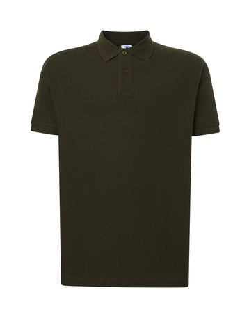 Polo męskie z krótkim rękawem. Zapinane na dwa guziki. Kołnierzyk i rękawy wykończone dzianiną 1x1. Boczne rozcięcia. 100% stabilizowana bawełna czesankowa pique.